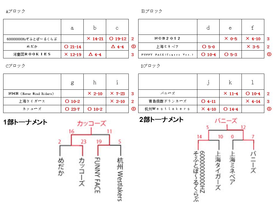 1部2部リーグ戦及びトーナメント結果