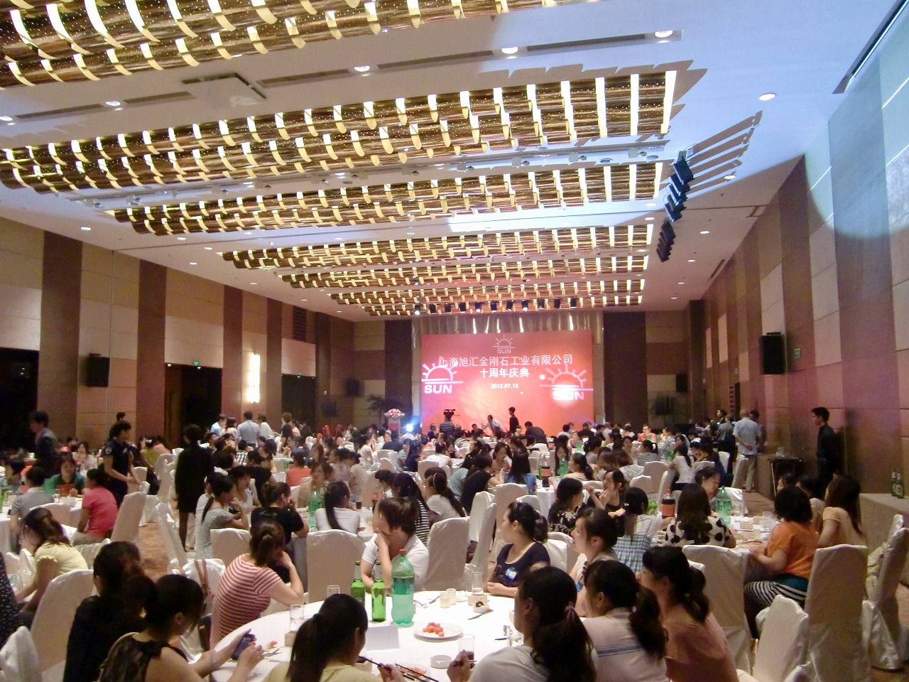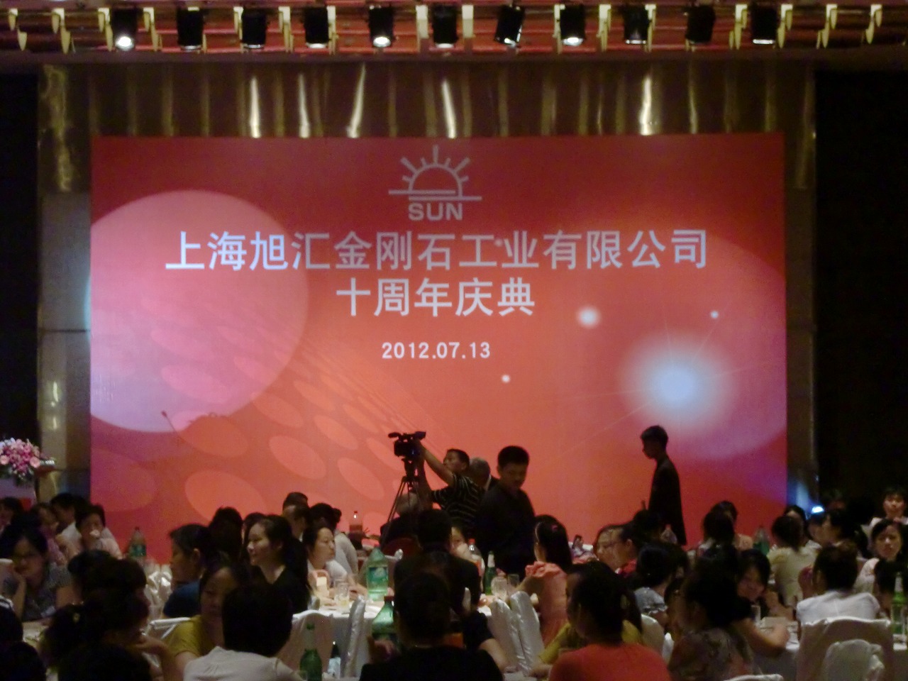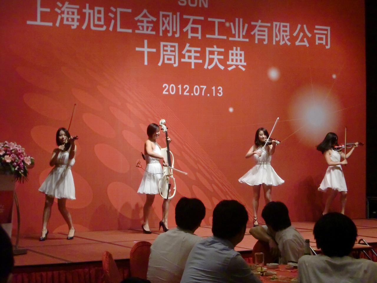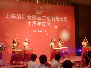 2012年7月13日、旭ダイヤモンド様の10周年式典を開催しました。日本からも多数の来賓がお越しになり、舞台で繰り広げられた多数の中国らしい演出に驚かれていました。