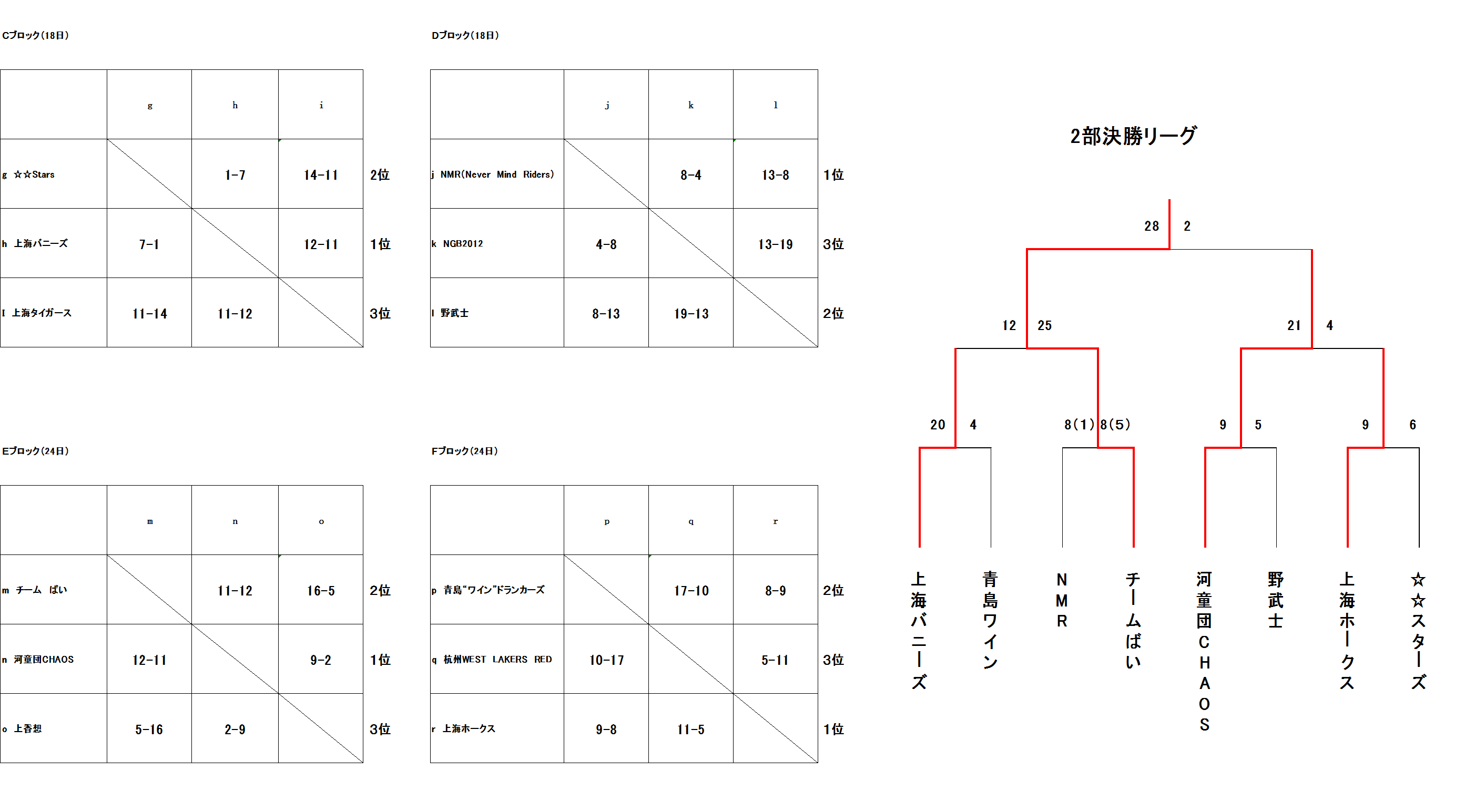 二部予選リーグ&決勝トーナメント