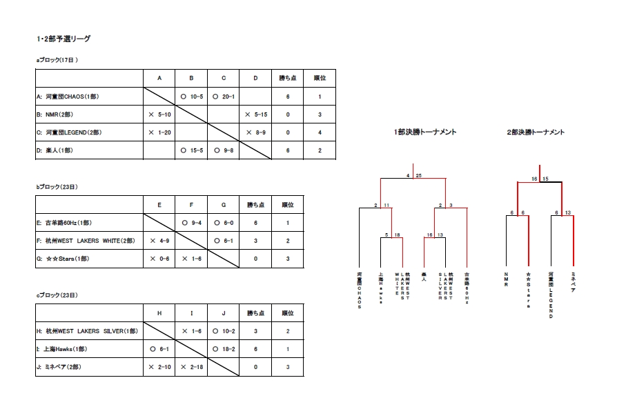 3部に分かれて行った今大会ですが1部・2部では予選リーグ戦→決勝トーナメント方式で行い白熱の戦いを繰り広げました。3部リーグでは未経験者・企業チームの接戦が繰り広げられ、接戦の試合も多く、非常に盛り上がる大会となりました。