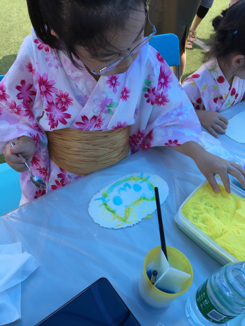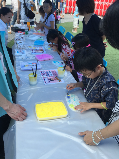 たこ焼きや焼きそばなど様々な飲食店の出店と、子供向けに金魚掬い、お絵かきせんべい、型抜き、トランポリンなどのブースやステージ発表があり、大いに盛り上がりました。