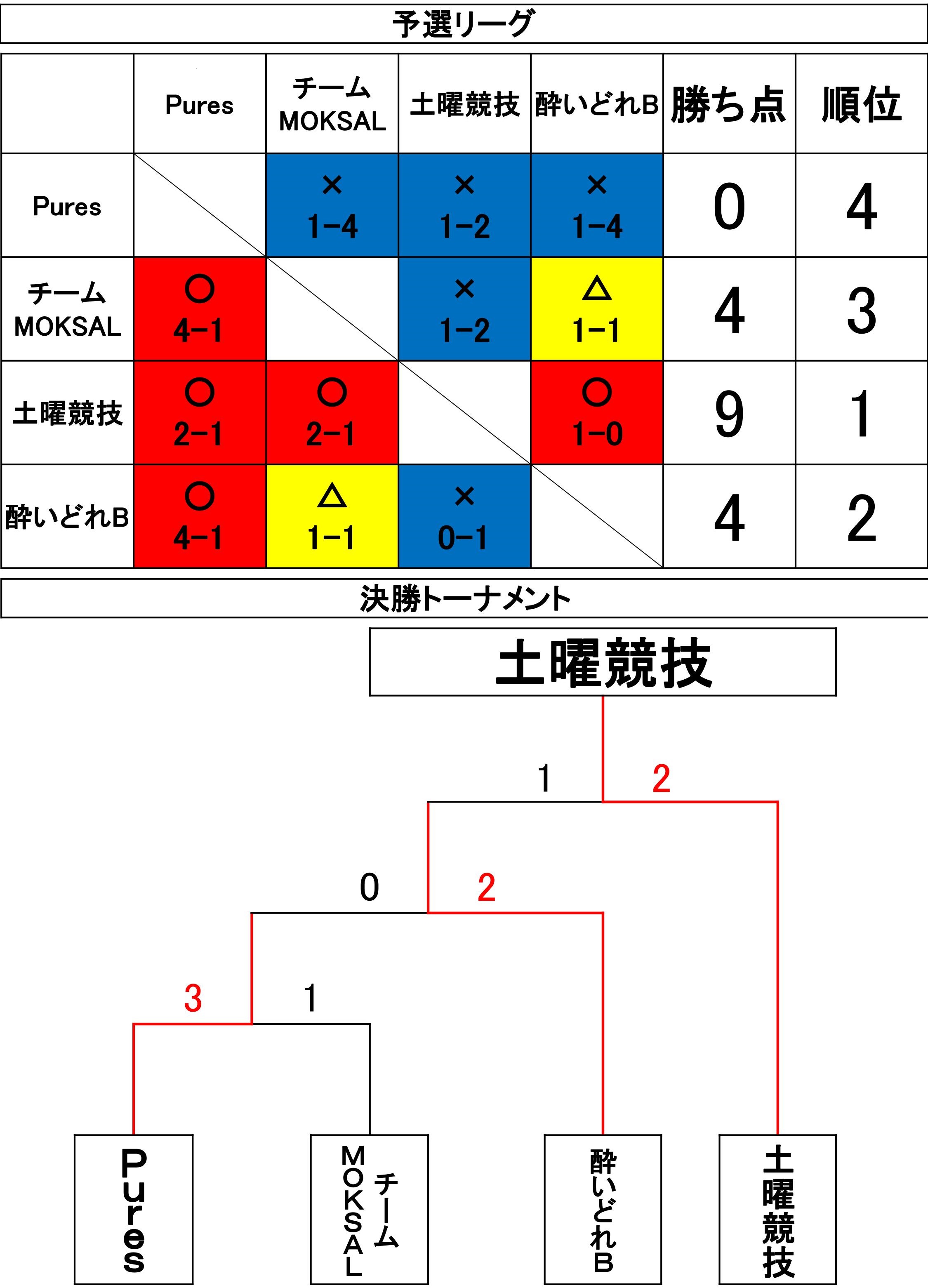 結果はガチンコリーグでは土曜競技が優勝を果たしました。