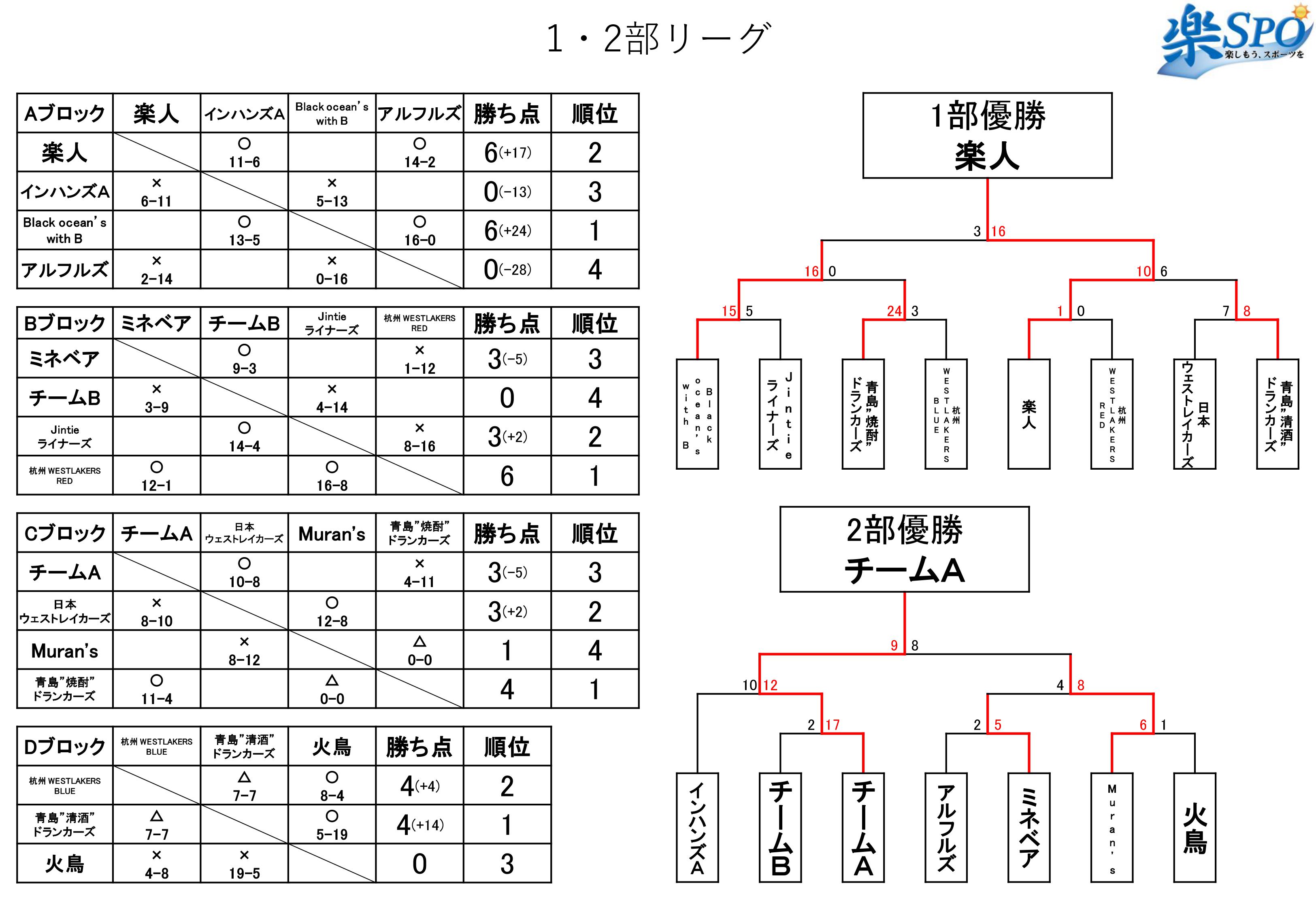 1部・2部リーグ結果