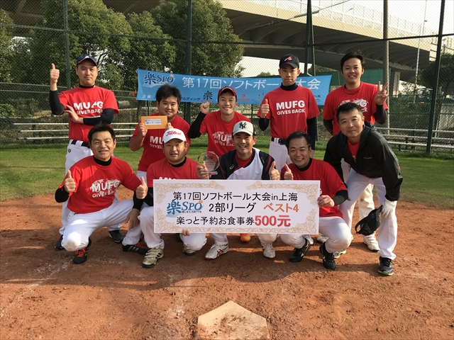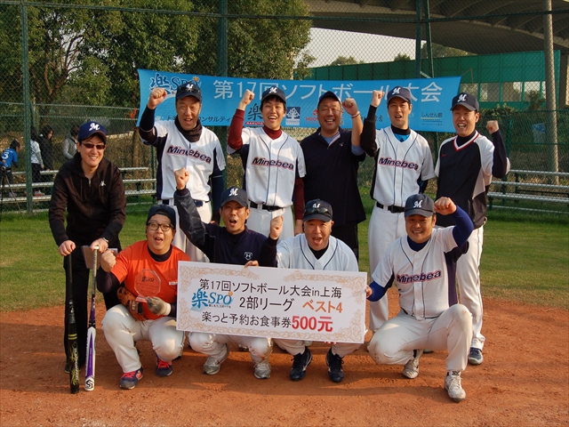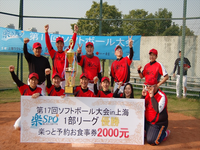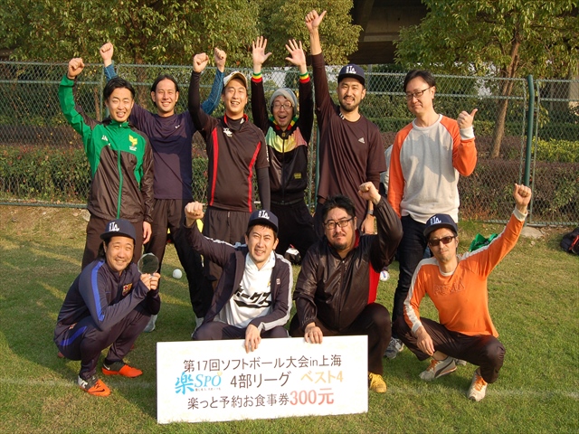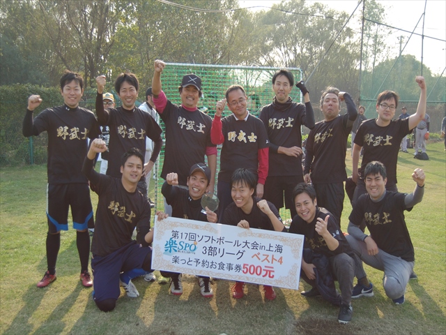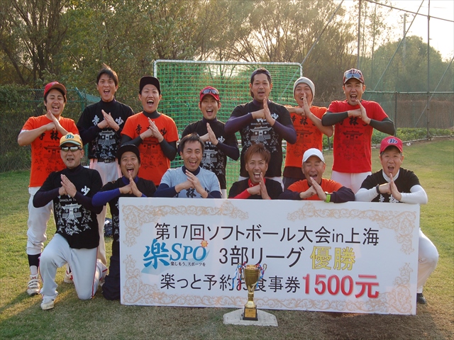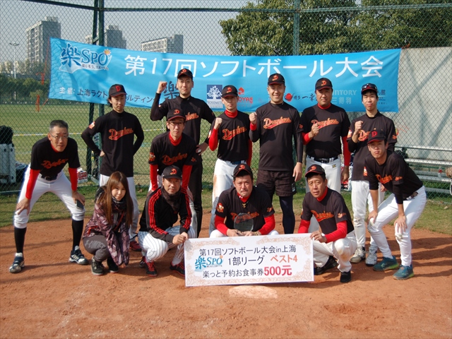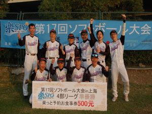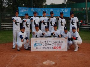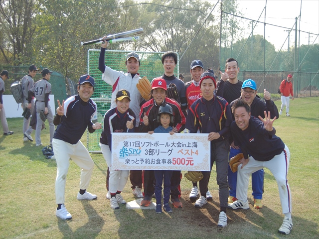 二日目、二日酔いもなく体調万全の我らは絶好調(4番のおかげ?)寂しく蘇州から再合流した4番にも当たりが戻り圧倒的な打力と守備力で優勝出来ました。